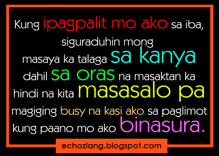 ECHOZ LANG! is only a collection of Filipino Quotes intended for fun purposes only. We have no claim in all quotes appear here within . All Quotes are owned and and full protected by thier respective owners.